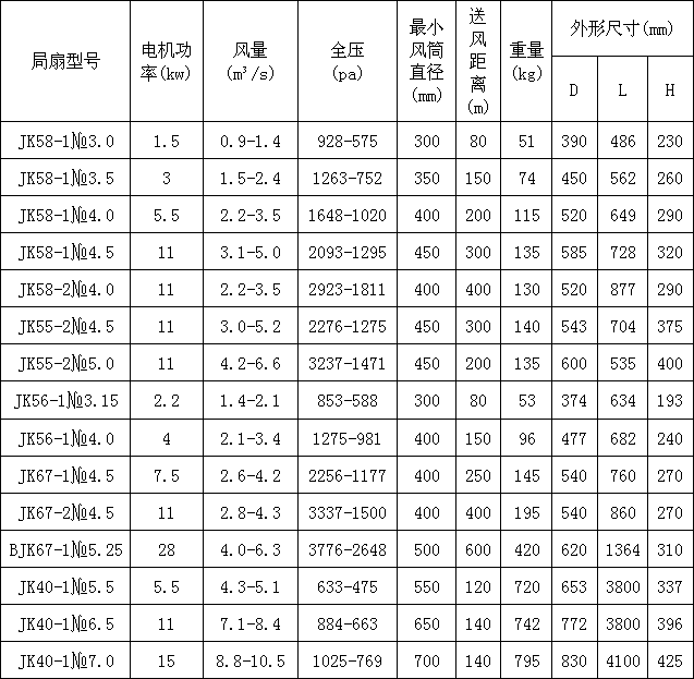 效節(jié)能低噪音JK系列礦用局部扇風(fēng)機(jī)是根據(jù)冶金、有色、黃金、化工、建材和核工業(yè)等各類非煤礦山局部通風(fēng)的需要設(shè)計(jì)的,適用于各種規(guī)格斷面的井巷掘進(jìn)通風(fēng)、采場(chǎng)和電耙道引風(fēng)、無(wú)底柱分段采礦法進(jìn)路通風(fēng)、其它局部通風(fēng)以及某些輔助通風(fēng)。也可用于隧道施工、地下工程施工等需要用風(fēng)筒送風(fēng)的場(chǎng)合通風(fēng)。